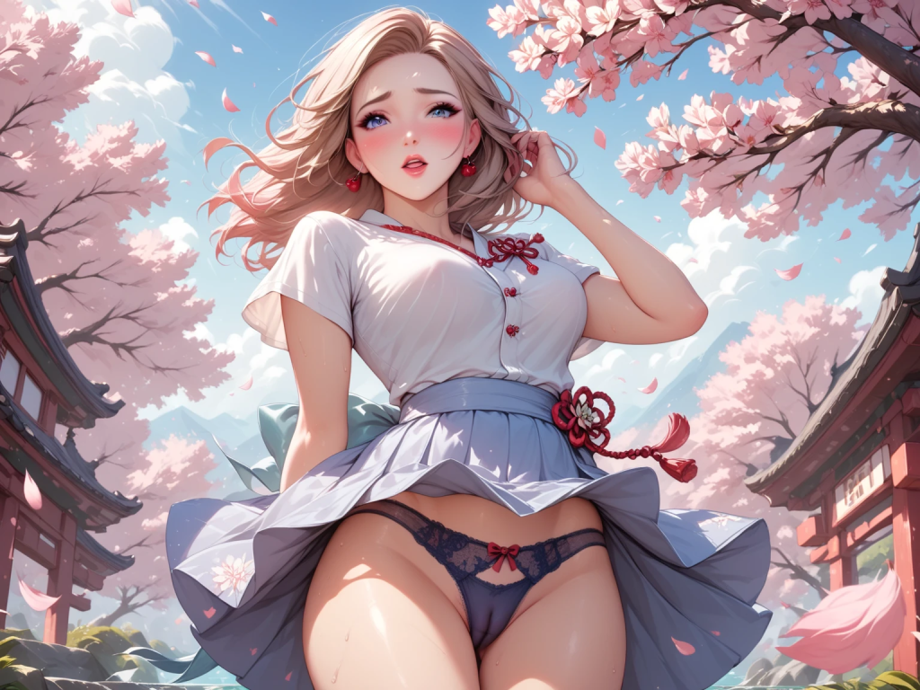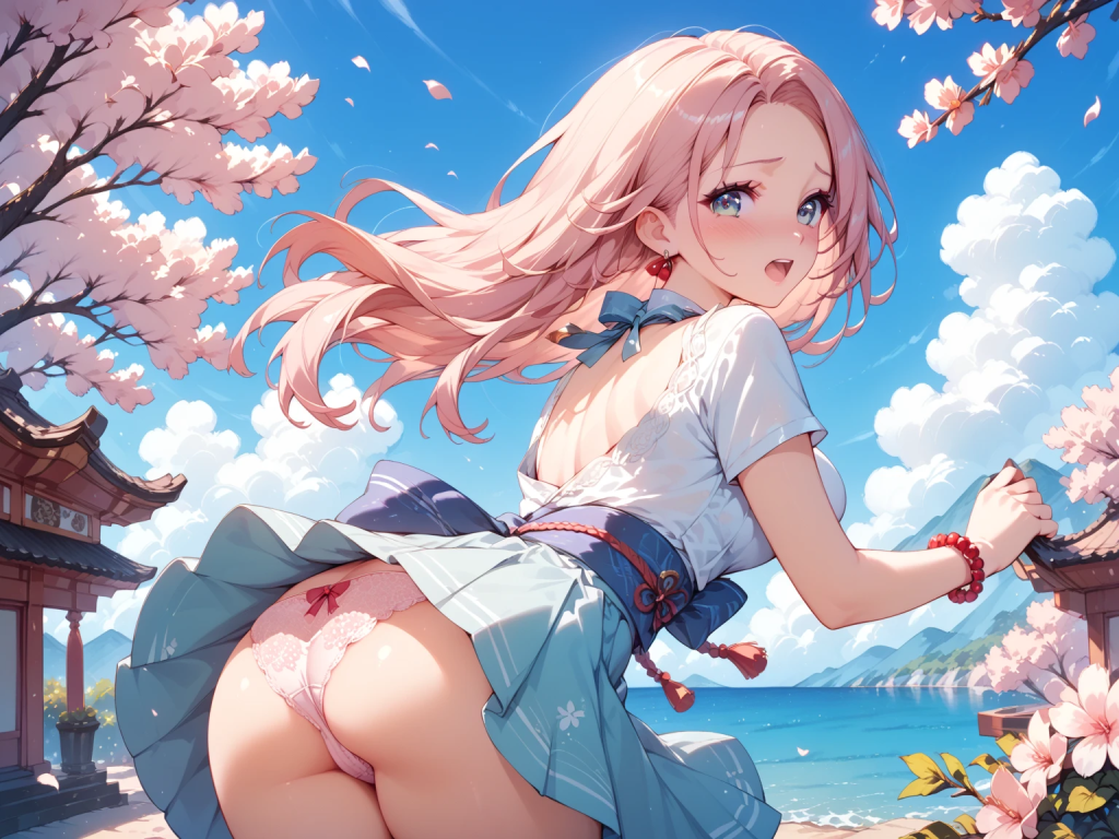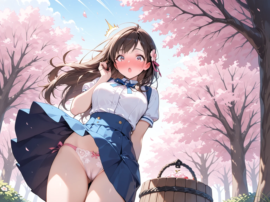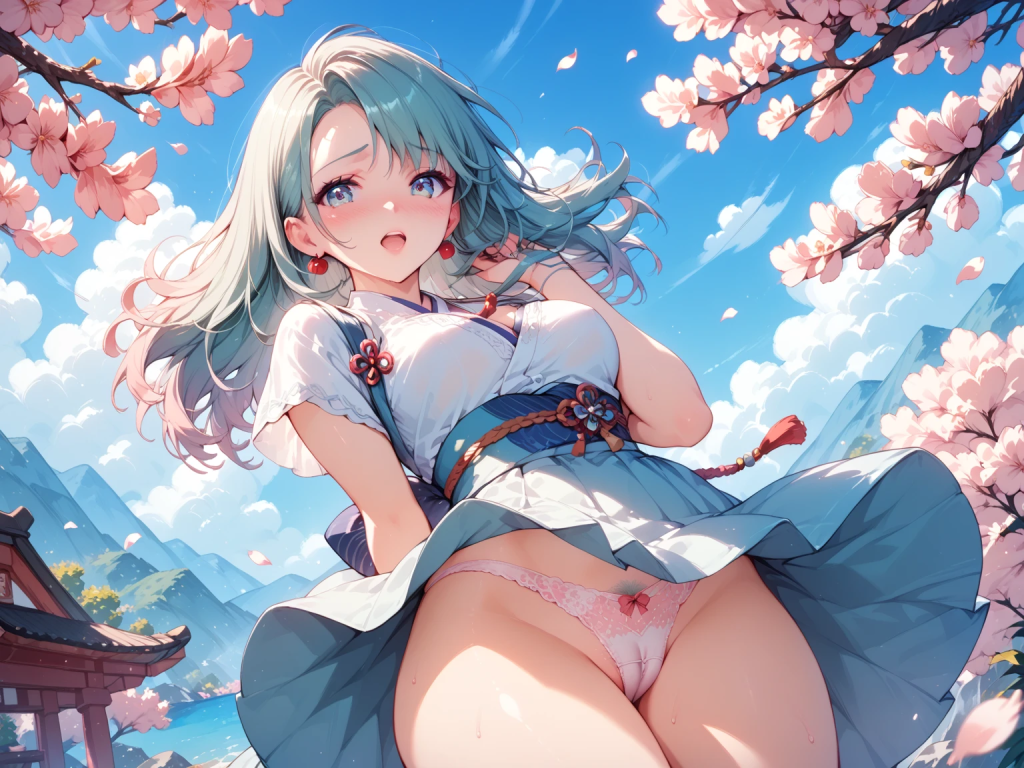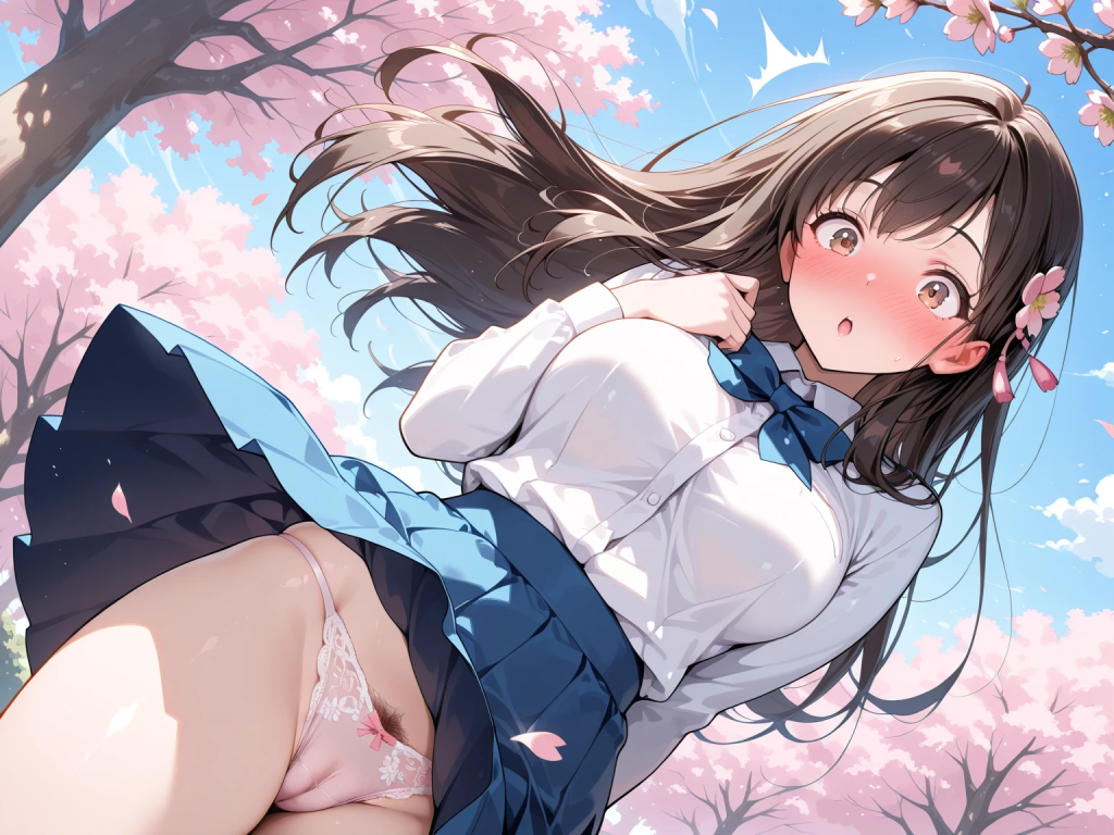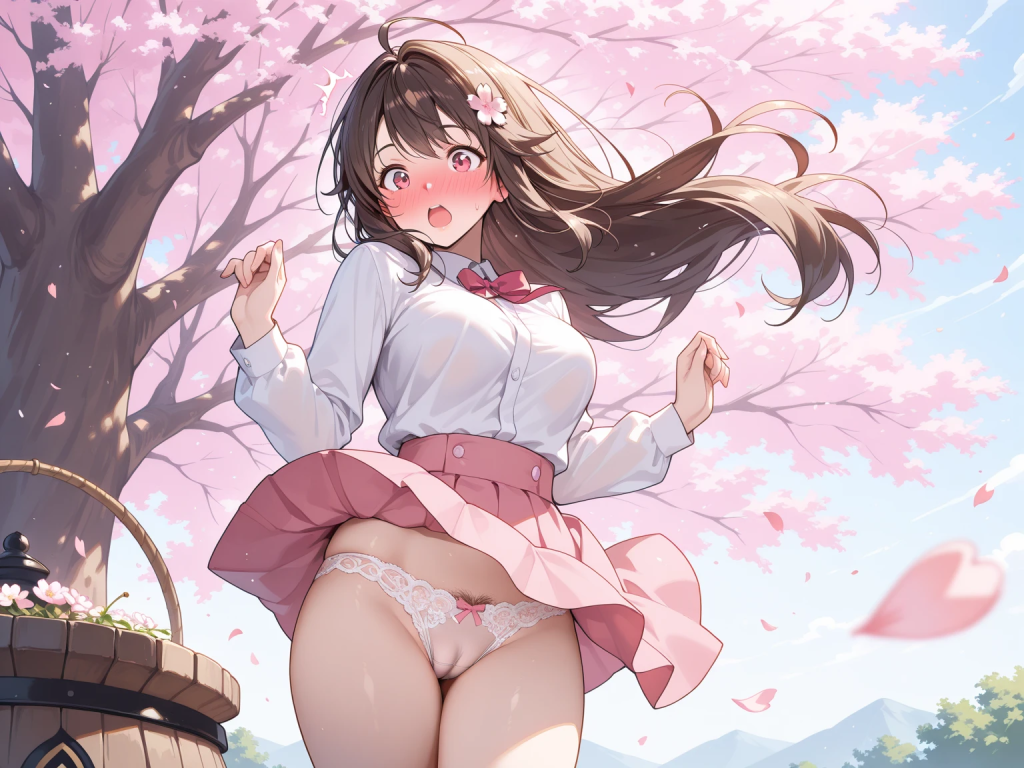 春風のイタズラ(笑)「桜吹雪とパンモロ」画像、大量に作ってしまったのでpixivにも投稿しなかった画像も含めてコチラにアップしました💕